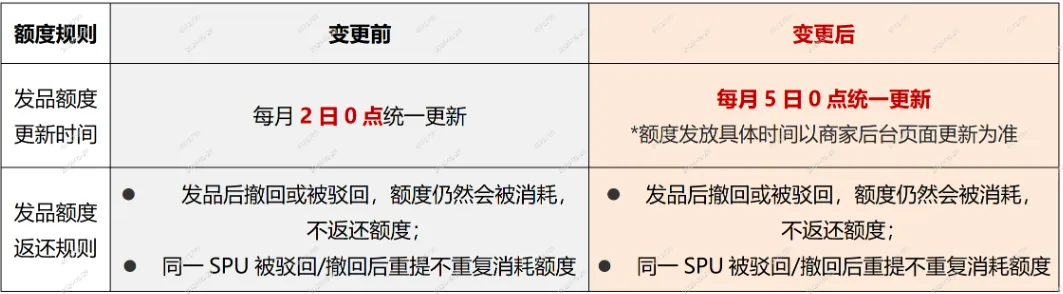 为进一步提升商家服务效率及优化平台管理,自2026年2月起,平台发品额度的统一发放时间将调整为每月5日0点。请您留意相关变动,合理安排发品计划。