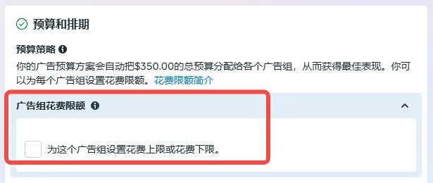 在广告组预算中,更推荐广告主优先选择系列预算,如果想要控制每个组的广告预算,可以通过在系列预算中设置花费上限或下限来保证广告预算能始终稳定在广告主的预期内。