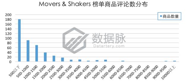 在上周登榜Tools & Home Improvement品类Movers & Shakers榜单的商品中,单个商品拥有的最大评论数为26027.0条,最小评论数为5.0条,平均评论数1456.86条,评论平均星级4.36星。在榜单的上榜商品中,有37.82%的商品评论数在500条以下;有19.12%的商品评论数位于500-1000区间内;仅有4款商品的评论数超过10000。骆探长(shujumai.com)发现,平均评论有小幅度下降,但平均星级保持不变。