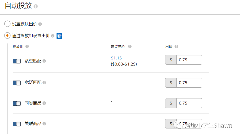 广泛手动匹配可以自己设定关键词或者亚马逊推荐词,增加产品的曝光和流量。