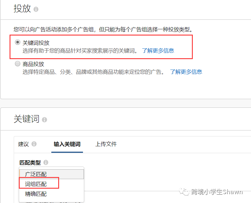 不同匹配类型的广告活动设置方法