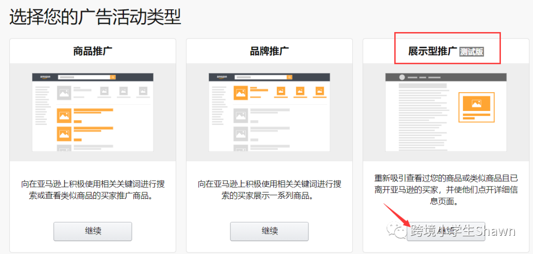 展示型推广广告,其实就是对已经浏览过你的广告页面的潜在买家进行再营销,会增加消费者对产品的印象,提升购买概率。目前只有收到邀请的卖家账户开放了展示广告,参加的条件亚马逊也没有公开。卖家是否收到邀请不会在邮件/后台通知,大家可以直接新建广告活动进行查看。