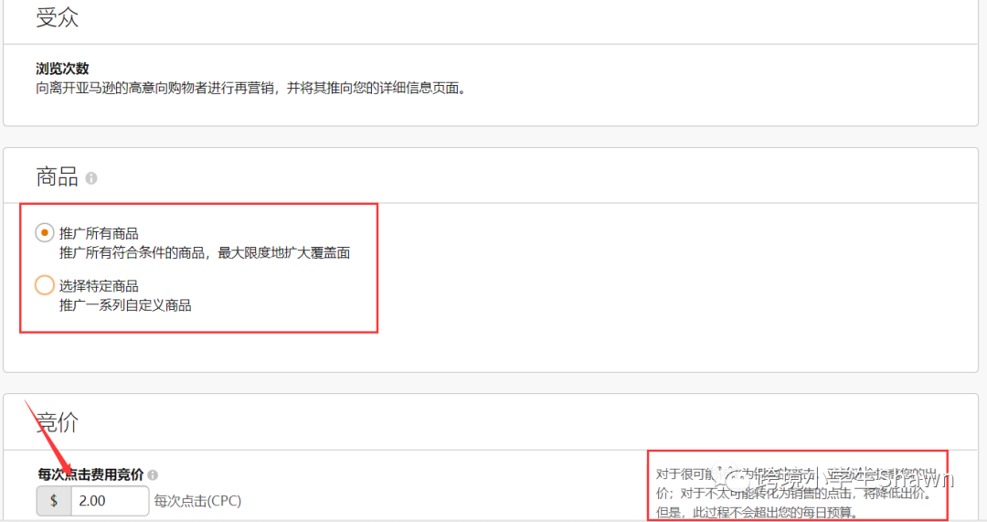 选择推广的商品和竞价启动广告活动