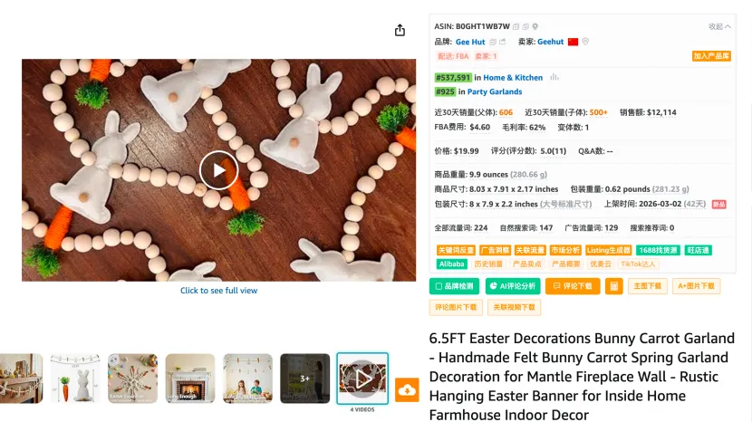 这个时间点,看似普通,实际上非常关键。对于复活节装饰类产品,消费者并不会提前三个月去采购。这类产品的真实购买高峰,通常集中在节日前4~6 周。也就是说,3 月初上架,正好切入了一个非常舒服的阶段。搜索需求已经开始升温,平台愿意给新品试探流量,用户购买意图明显增强。竞争虽然激烈,但还没有完全进入白热化尾声。