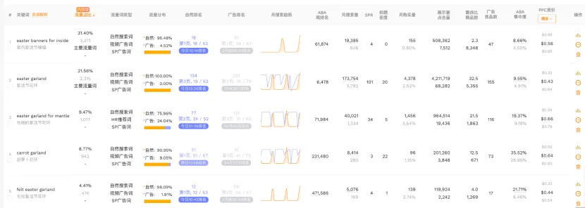 另外很多卖家一看到easter garland 这种大词排名没有做到很夸张,就会觉得链接没打起来。这其实是典型的误判。因为新品 40 多天,想在超级宽词里直接冲到特别靠前,本来就不现实。真正重要的是它虽然没有完全统治大词,但已经靠一堆更精准、更高意图的词,把订单做出来了。这才是真正成熟的新品打法。不是一上来就竞争核心大词首页,而是先用一组精准长尾词做出订单密度,再慢慢反哺大词。