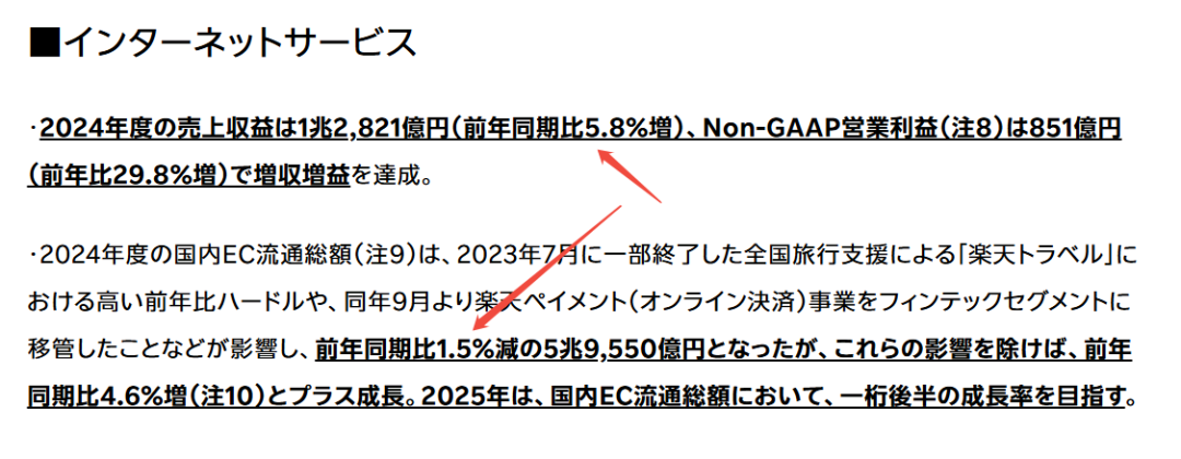 “2024年,日本乐天市场的整体GMV下降了1.5%,但是乐天市场的利润率增长了5.8%”。