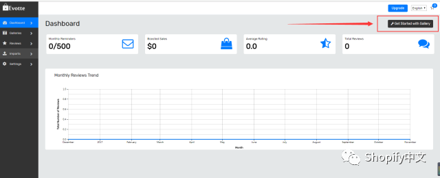 2.在安装之后点击进入APP后台:Dashboard->Get Started with Gallery。