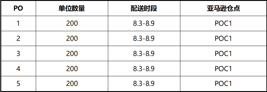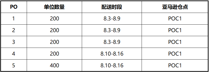 在预约送仓时间时,该批货件中所有的PO单位都属于8月3日-8月9日这一配送时段,因此可以预约该配送时段所预留的入库预约时段。