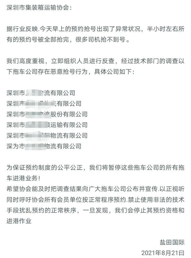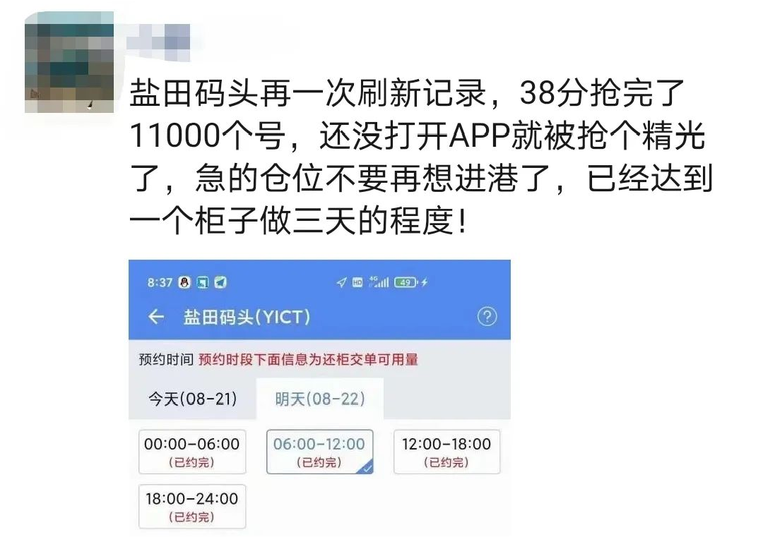 深圳盐田港1.1万个预约号被“秒杀”!恶意抢号?海运供需失衡延续。