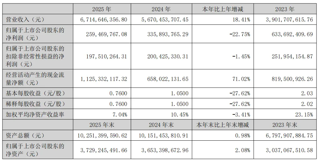 报告期内,乐歌实现营业收入67.15亿元,同比增长18.41%;归属于上市公司股东的净利润为2.59亿元,同比下降22.75%。