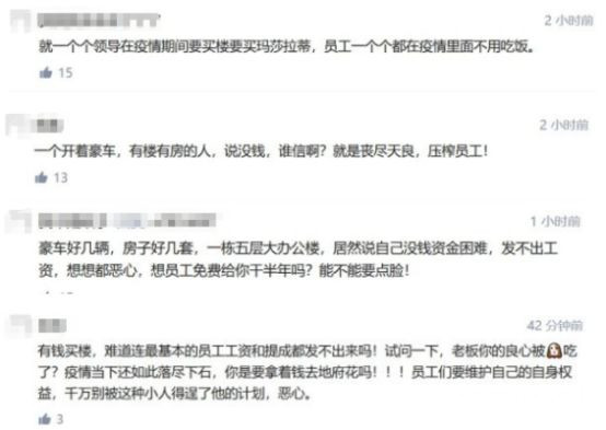 然而,有员工爆料,该公司拖欠员工工资不发,公司领导却在疫情期间买楼、买车。