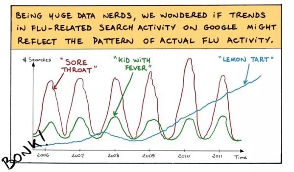 比如,“新车”和“皮革座椅”相关度很高。如果人们夏天搜索“新车”趋势上涨,那么“皮革座椅”的搜索率也会提升,因为它们具有正相关性。