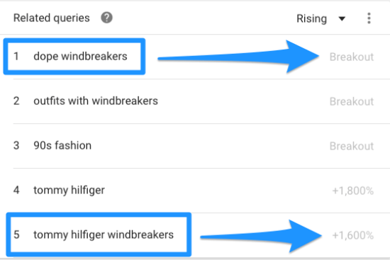 然后发现了两个新的关键词:“Dope Windbreakers”和“Tommy Hilfiger Windbreakers”。