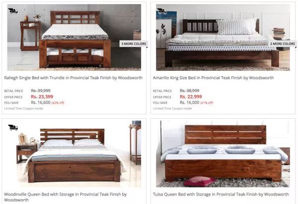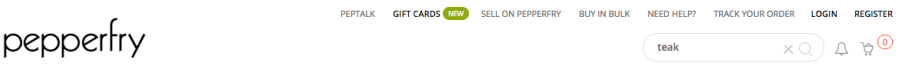 再来看看“breakouts”排序。排在首位的“Pepperfry”,是一个印度家居网站。在搜索栏输入“Teak”,会出现如下结果: