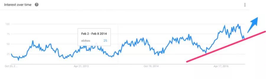 从谷歌趋势看出,近年来,电动自行车的搜索量正逐步攀升。