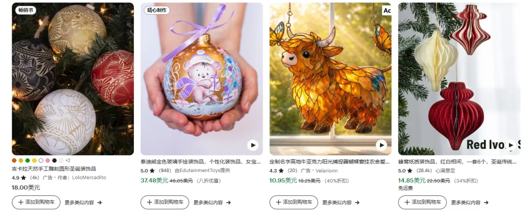最后是季节性礼品类,比如圣诞节挂件、万圣节装饰、节日定制贺卡等。这类商品虽然季节性强,但提前布局就能赚一波快钱,而且需求稳定,每年都能重复售卖,Etsy上这类商品的销量常年居高不下。