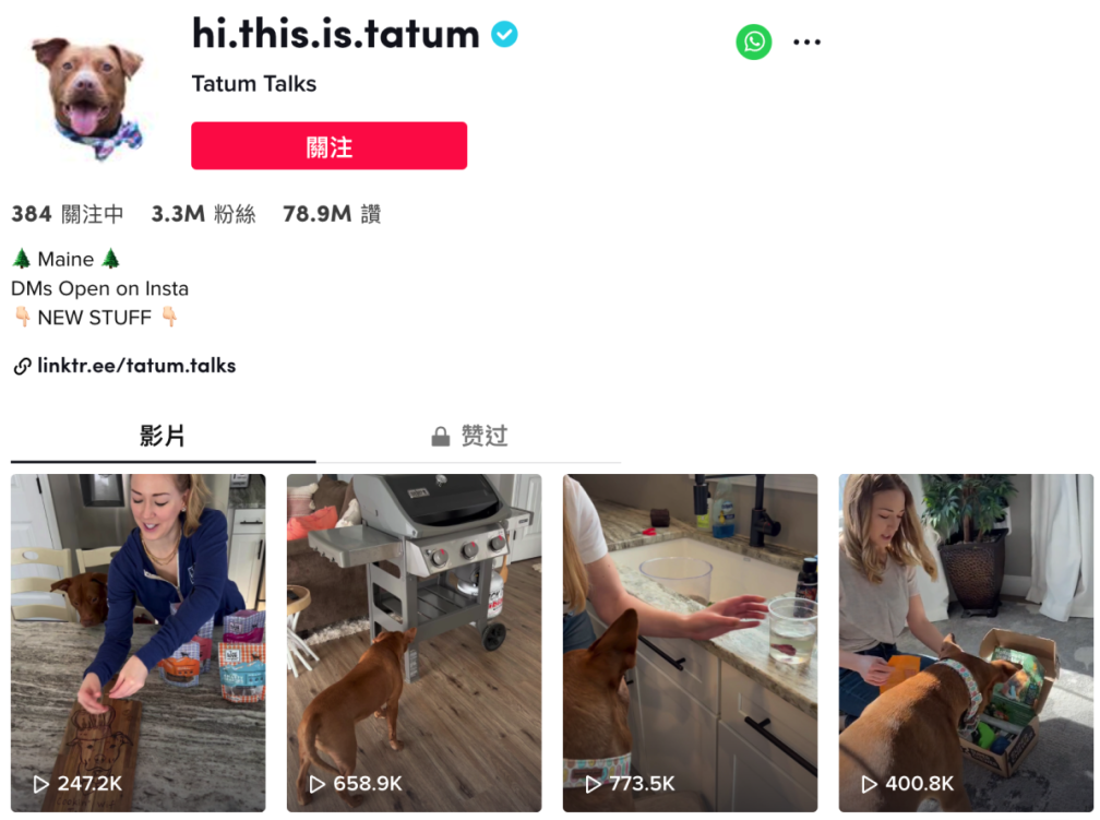 其实,像一些狗狗吃饭、洗澡、玩耍的视频在TikTok上一抓一大把,司空见惯的事物很难让观众停留驻足,而这些宠物领域的kol的萌宠视频,大多以抖机灵,赋予宠物人性化的特征的视频为主。