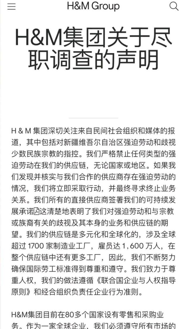 近日相信大家都听说了闹得沸沸扬扬的H&M抵制新疆棉的新闻了,这则新闻起源于24日, 瑞典服装品牌H&M发表在官网上的一份声明在微博上广泛传播,引起中国网友们的怒愤。这份名为“H&M集团关于新疆尽职调查的声明”称,H&M集团对来自民间社会组织的报告和媒体的报道“深表关注”,其中包括对新疆维吾尔自治区少数民族“强迫劳动”和“宗教歧视”的指控。声明表示,H&M不与位于新疆的任何服装制造工厂合作,也不从该地区采购产品/原材料。