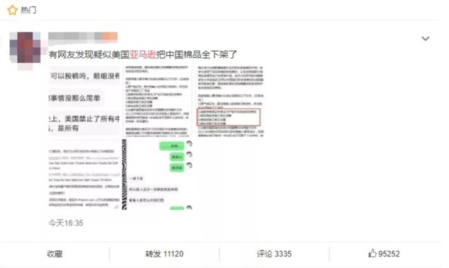 紧接着便是跨境卖家们最为匪夷所思的,亚马逊、Wayfair等跨境电商平台疑似下架所有中国棉制产品的消息在跨境卖家群里疯传。