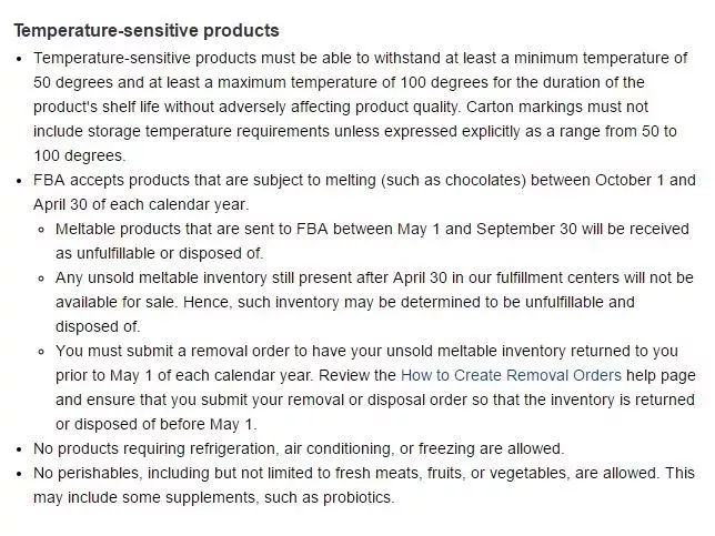 其中巧克力制品要先查阅一下亚马逊“日期和温度敏感类产品指南”。如下: