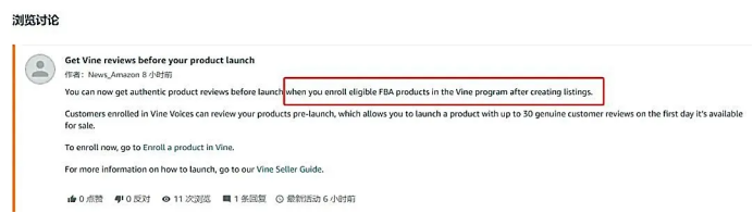 不用等上架了: 7月2号开始,卖家只要创建好FBA的SKU就能报名Vine计划,产品不用先进仓或者变成“可售”状态。