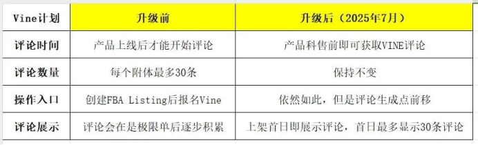 7月2日,亚马逊悄然上线Vine计划重大更新:卖家无需产品入仓即可注册,新品上市首日就能挂满30条评论。