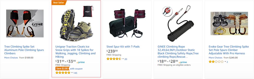 4、为进一步调研市场,在亚马逊上输入climbing spikes,搜索结果如下: