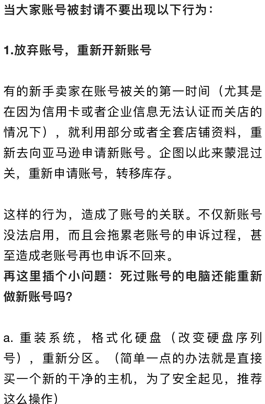 为了避免账号关联,在操作新账号时,保证IP路由、网卡、系统是全新的。多账号操作时,不要使用相同的税号信息和收款账号,否则会封闭其中一个账号。如果办公地址发生变更,请及时联系亚马逊客服说明情况。