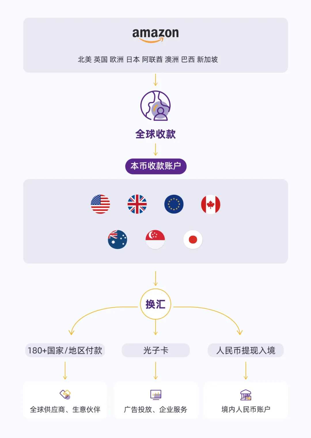在此关键节点,品牌A的运营经理Jack在展会活动上了解到PhotonPay光子易专为亚马逊跨境卖家打造的一站式收付兑解决方案。作为亚马逊官方认证的SPN,PhotonPay光子易已覆盖北美、英国、欧洲、阿联酋、澳洲、巴西、新加坡、日本等亚马逊站点,支持企业全流程在线开立收款账户,操作便捷,高效合规。此外,PhotonPay光子易提供本地化收款服务,支持美国、英国、欧盟、日本等多个国家和地区的本币直收,无中间行手续费,最快T0到账,极大提升资金流转效率。