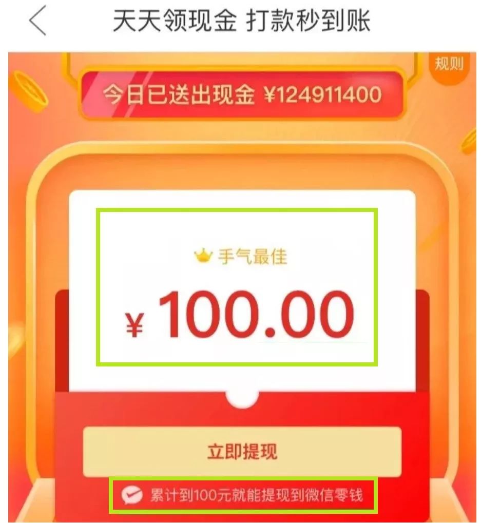 红包的下面还有一行小字在提醒着你 “累计到100元就能提现到微信零钱” 。
