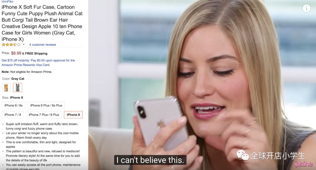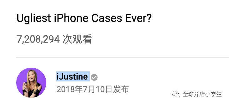 卖手机壳或者是卖电子产品的卖家,对【iJustine】这个网红,应该都不陌生,她的电子开箱,配件测评的视频,经常都是youtube相关搜索词的首页推荐,去年她做了一期最丑手机壳的测评开箱,目前已经累计了720万的浏览量