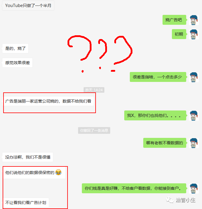 比如上面这个,小生看完不知道说什么好。想了一天,我还是决定结合自己的经验和观点,分享一下如何找如果想在油管上卖货,如何识别不靠谱的代运团队吧(以下单纯个人观点,仅供参考)