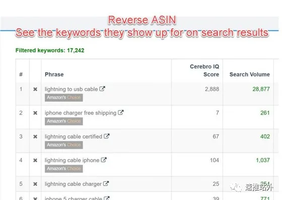 通过Helium 10可以反查竞品的ASIN关键词,还能看到该产品的所有Amazon choice关键词,这些都很值得参考。