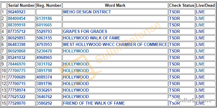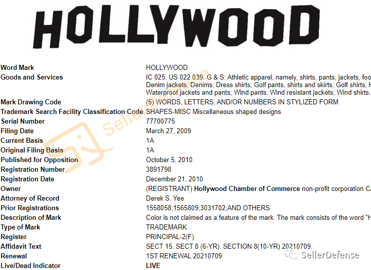 以下原告旗下注册的文字商标都是不可以碰的,尤其是 HOLLYWOOD 千万不能出现在标题里面,侵权风险很高。