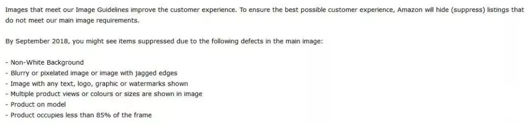 现在有卖家已经收到亚马逊的邮件通知,截止9月,如果卖家产品图片不符合以下要求,其相关产品将被屏蔽: