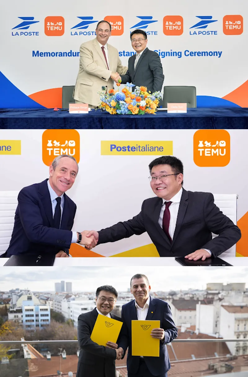 过去这一周,Temu在欧洲突然密集与法国、意大利、奥地利等国家的邮政集团签署合作备忘录。