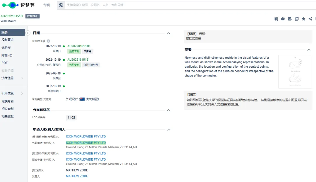 本次主要针对这款手掌壁挂架产品进行分析!该品牌权利人名下专利产品,给大家列举专利产品如下!