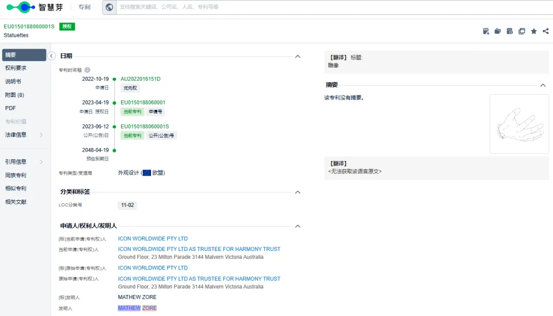 用权利人ICON WORLDWIDE PTY LTD(发明人:ZORE, MATHEW