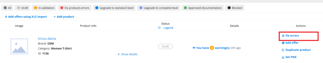 修复错误 —— 如果您的产品文档仍处于验证过程中,该按钮将会显示。