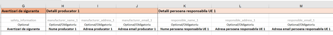 文件中将包含用于填写安全信息的列,以及用于填写产品制造商和欧盟责任人详细信息的列。