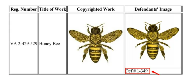 案件二:涉案349店!Sunny SolWind蜜蜂插画版权案
