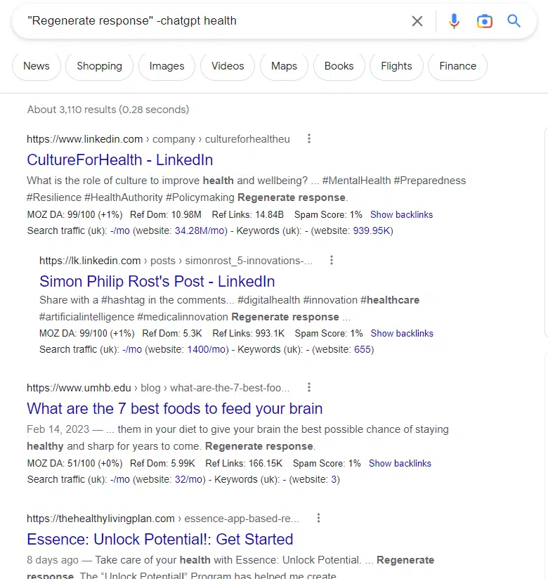 谷歌能识别AI产出的内容吗? 能, 当在 Google 上查找“Regenerate response”-chatgpt 时,将获得复制和粘贴 ChatGPT 内容而无需过多编辑的网页的结果——从 AI 聊天机器人界面中的“Regenerate response”短语可以明显看出:
