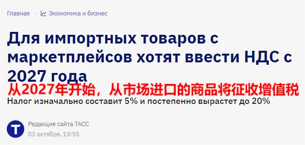 2024年10月初俄罗斯财政部已提出增值税改革提议,计划2027年起对个人通过电商平台购买的跨境商品征收增值税,税率将采取分阶段上调方式,2027-2030年间从5%逐步提升至20%。