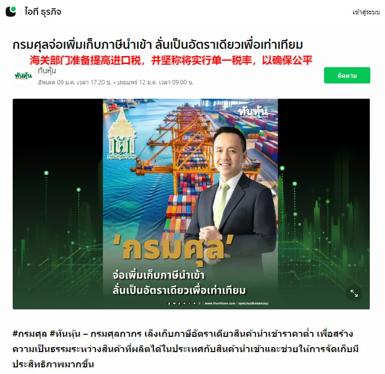 不仅如此,泰国海关署还在研究进一步上调进口税率,当前平均约10%的税率被认为难以保障本土产品与进口商品的公平竞争,未来相关税率最高或上调至30%,泰国市场的跨境运营成本将显著增加。