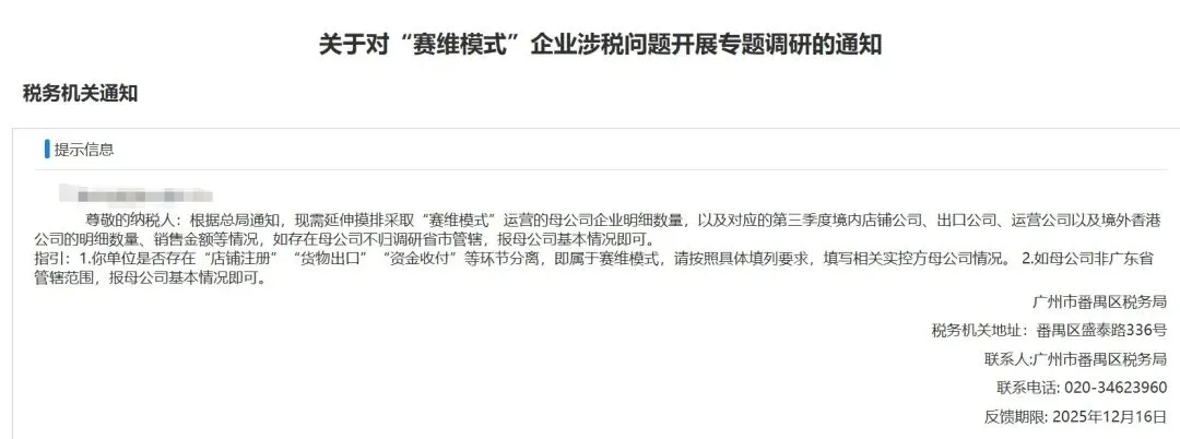 近日,部分卖家就在电子税务局发现新增待办事项《关于对“赛维模式”企业涉税问题开展专题调研的通知》。