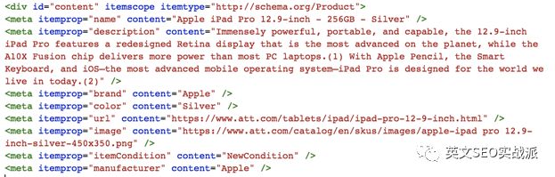 在上面AT&T的iPad Pro的搜索结果案例中,我们可以看到他们团队已经用Schema.org去帮助搜索引擎用Microdata摘要去更好地明白这个页面中的信息。