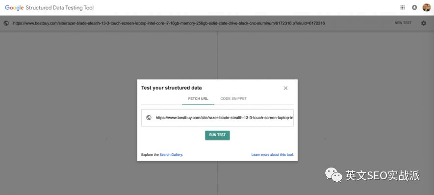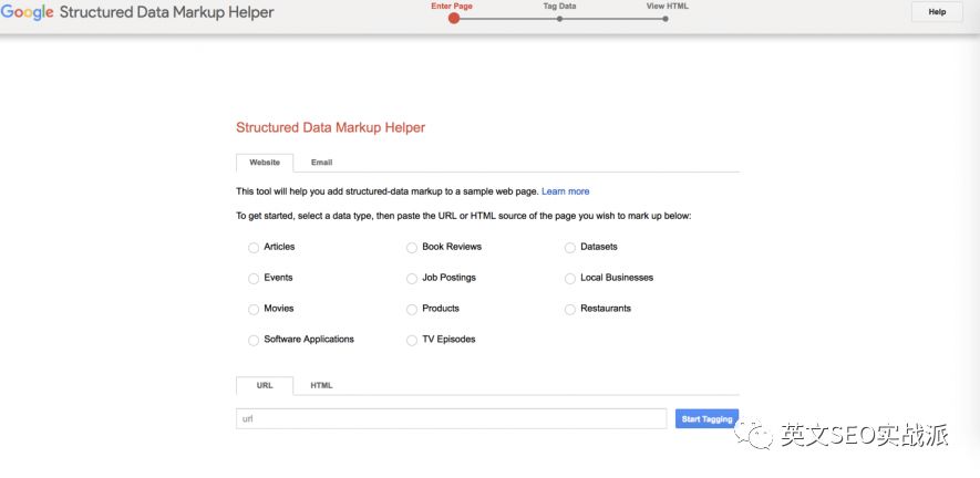 你首先只需要的是你希望用结构数据去优化的页面链接。在链接框里输入链接,并且在“Markup Type”选择产品。