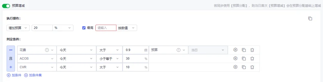 设置预算优化策略,可以自动减少预算,降低不必要的支出,增加预算放大表现好的广告活动或关键词的效果;