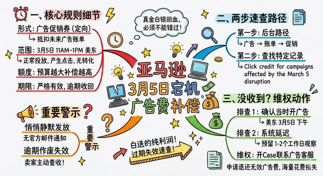 各位亚马逊卖家注意,3月初那场震惊跨境圈的系统大崩溃,现在终于有真金白银的后续赔偿了。