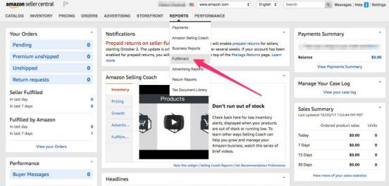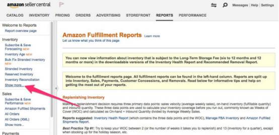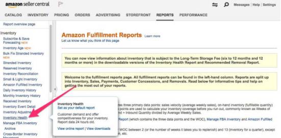 另一种方式是,使用卖家中心的“Inventory Health”报告。按照以下步骤获取该报告:在卖家中心,找到“Reports”,点击“Fulfillment”选项。